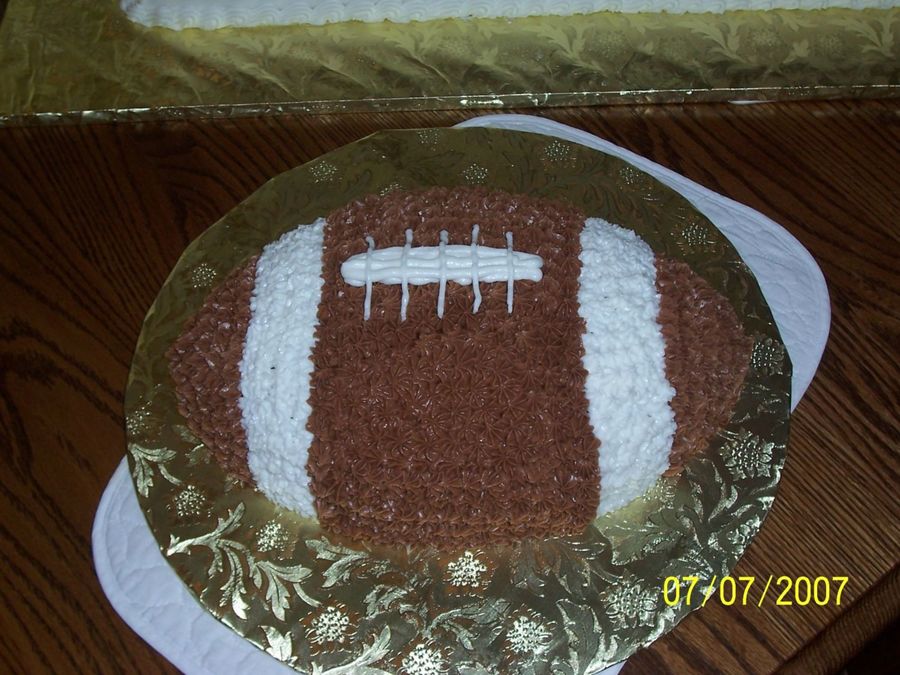 This is the football cake that went along with the football field cake I made. It is milk chocolate cake with "granny's" buttercream icing.