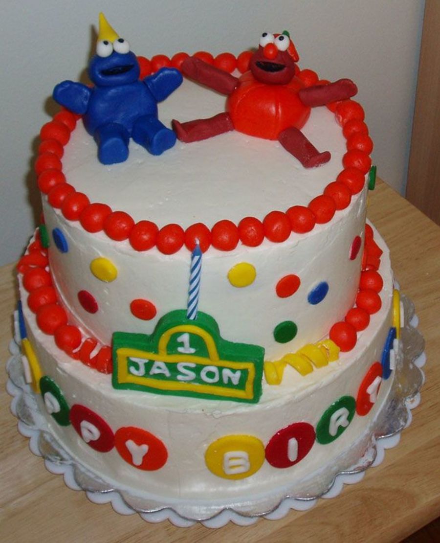 Just adding to the gallery. This was for my son's 1st birthday/Halloween party. SMBC, fondant accents, Elmo & Cookie Monster and gumpaste sign.