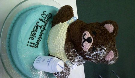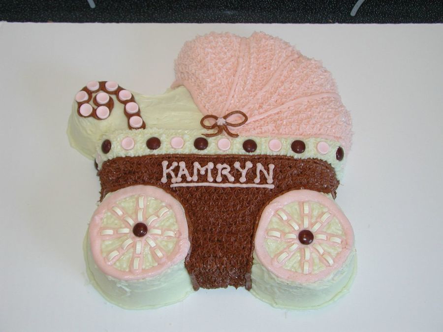This cake is made out of french vanilla cake and buttercream icing. It was for a baby shower from the wilton stroller pan.