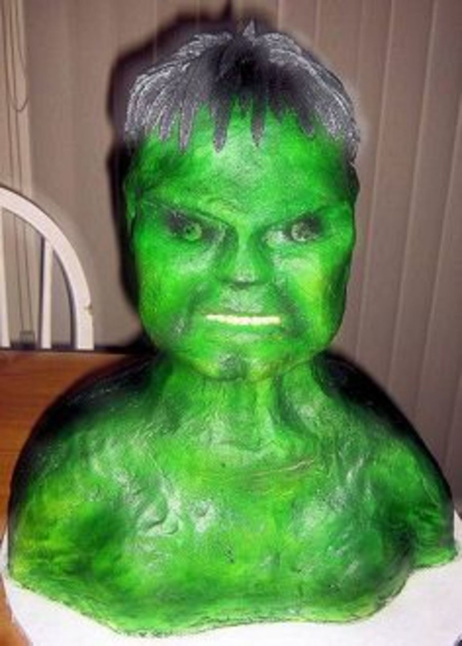 This was done using a mannequin head, and cake of course.. krispies to give my female mannequin head a more manly facial features, buttercream icing, and air brushed