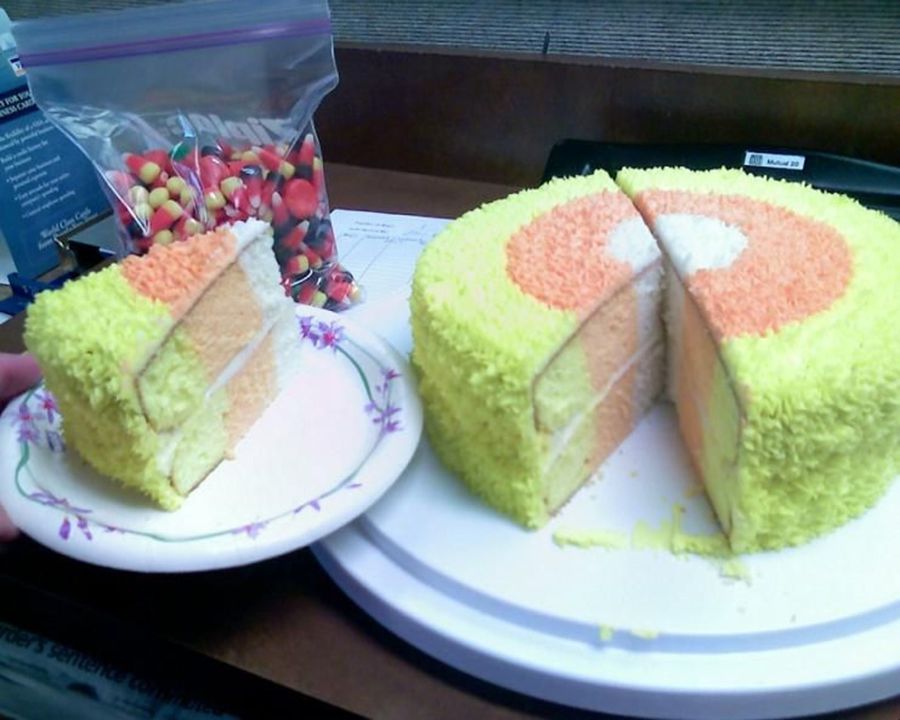 Tweedie on 1 Nov 2007 , 3:39pm Very cool. I love how you matched the icing colors on top to the cake colors inside!