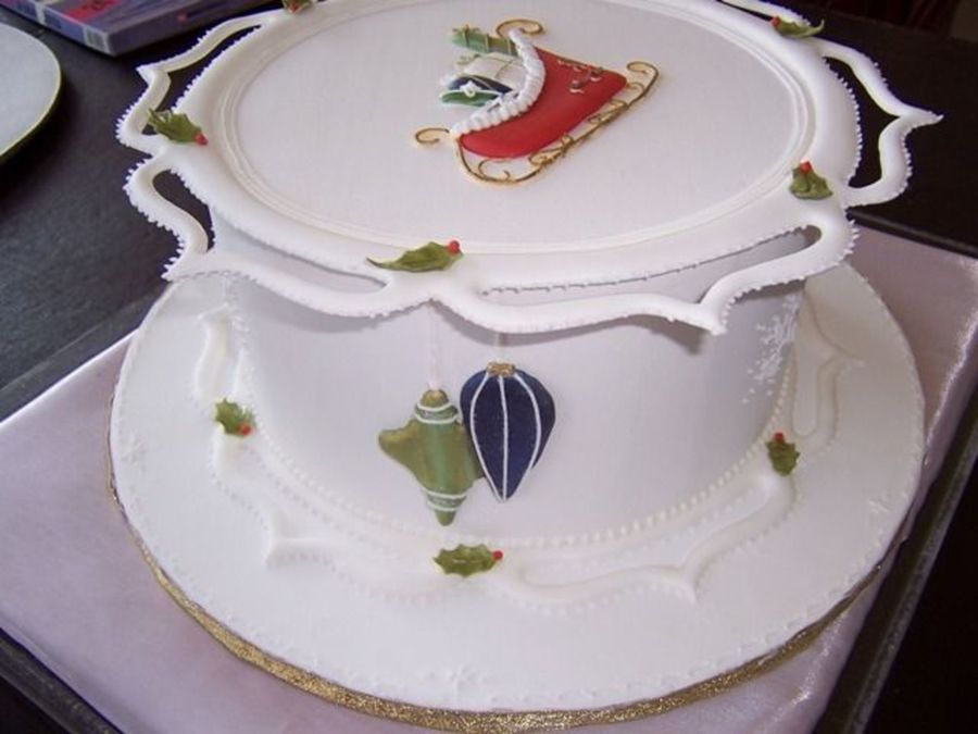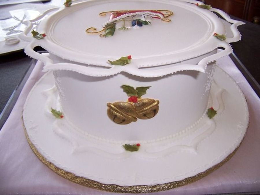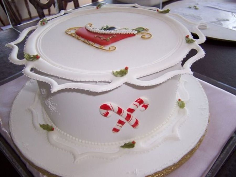 I did this cake for the upcoming ACD issue. Run sugar top and bottom collars and a different run sugar motif on each side. Sorry you can't see them. I did a candy cane, ornaments and a pair of sleigh bells. But the candy canes were in the teaser in the back of the current issue.