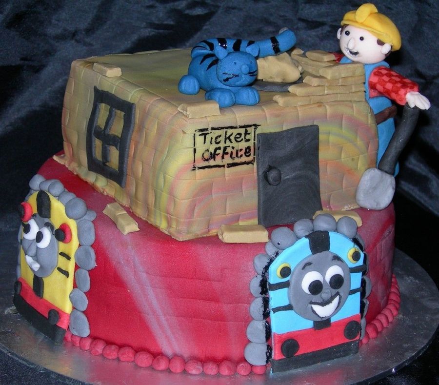 Today is the party for my twins 3rd birthday - and yes, you've guessed it - one likes Thomas and one likes Bob! So this is how I got round it. Chocolate and strawberry sponge with BC and fondant icing and decorations. Enjoy - I hope they will.