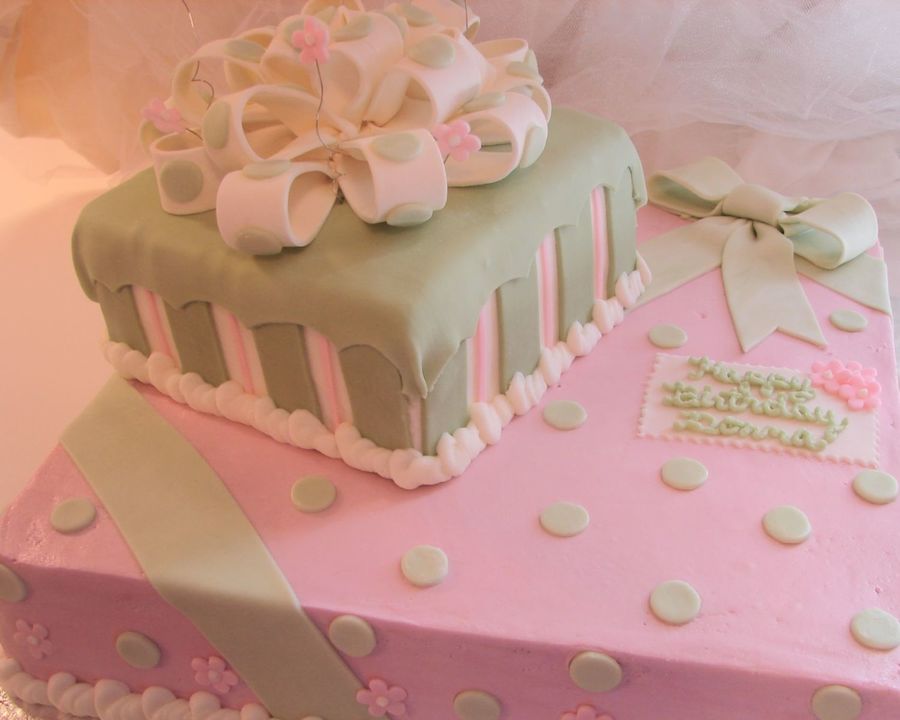 Base icing is buttercream. Bows made from Gumpaste. Detail work is fondant.