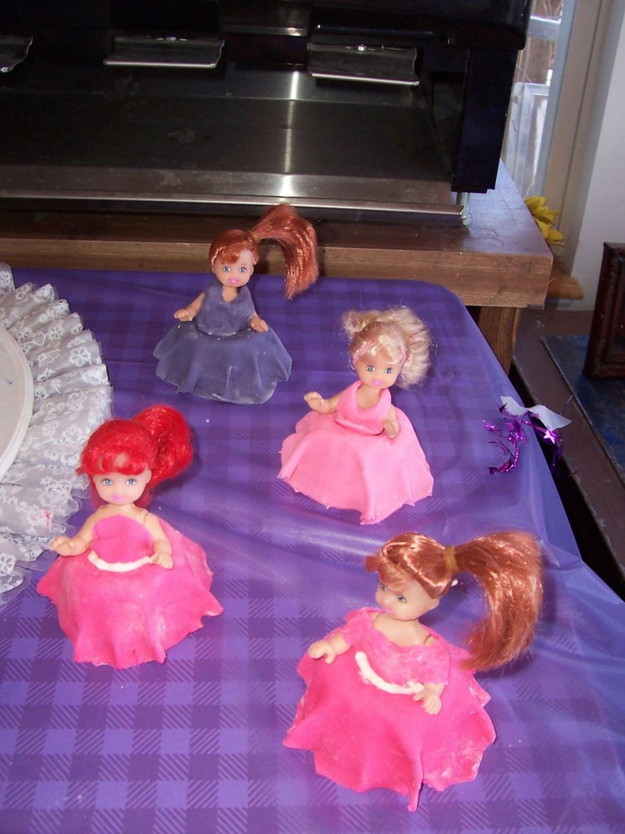 these went with the barbie cake, they are cup cakes with fondant and butter cream(this is were i found out children hate fondant) but they were fun to make