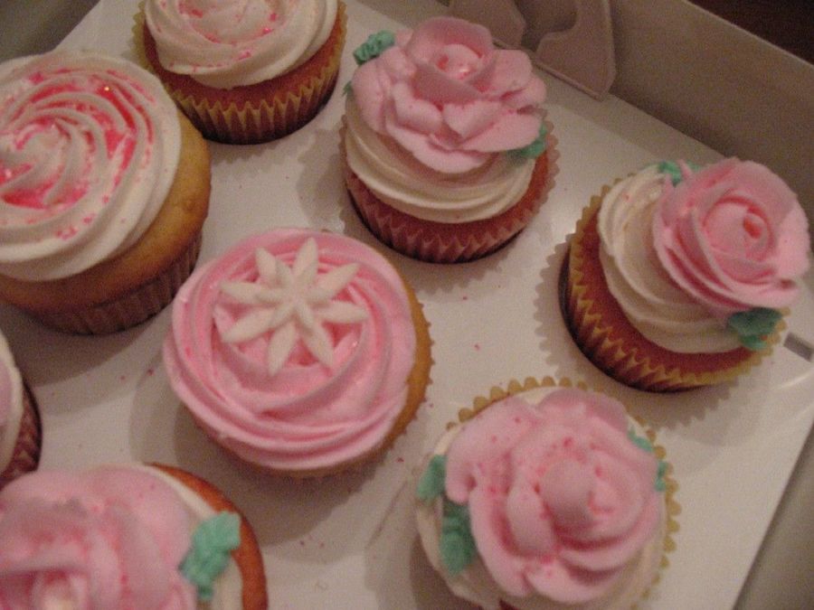 white chocolate and strawberry cupcakes with bc icing for bday party....went with smash cake