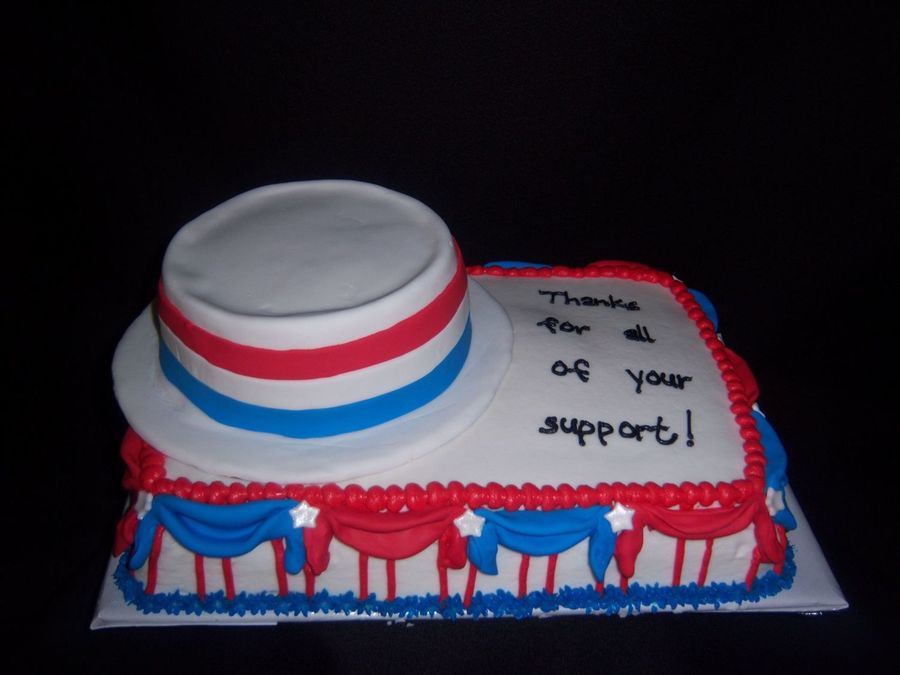 Cake was for the recently elected Mayor. He was my oldest's soccer coach. His wife wanted a cake to say Thanks to their friends and family for their support.