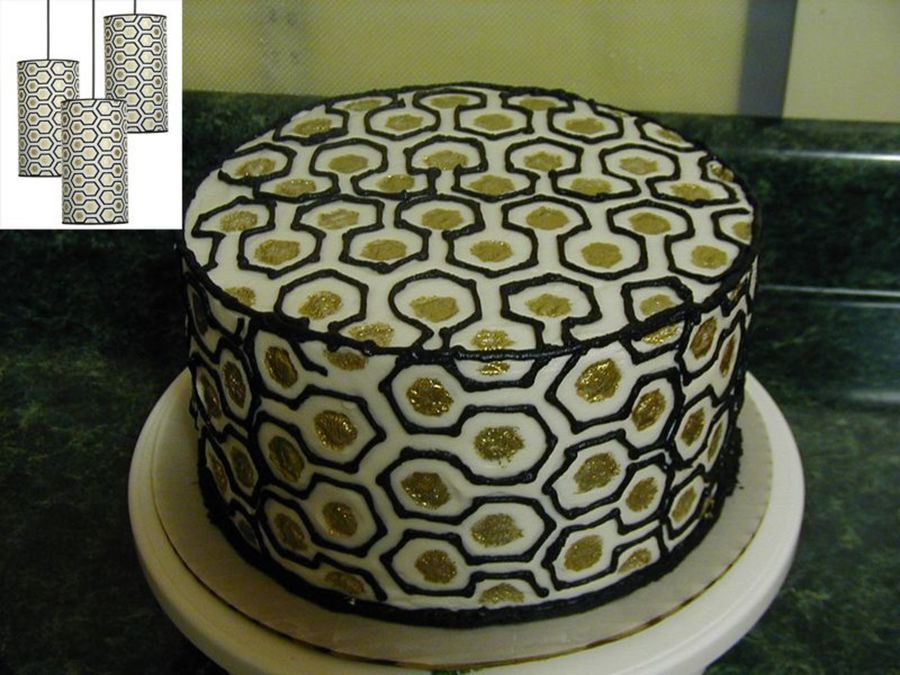 I got the idea for this cake from a lampshade. I made the cake for my sisters for their birthdays. They're a week apart, and were having the party on the same day. So, I just sent it back with my mom when she came down to visit. My family loves being my guinea pig. It was mostly to practice the design (which still needs a lot of work), and to test the crème brulèe coffee creamer for flavoring. Next time I will use fondant. My oldest sister doesn't like fondant, so I just used buttercream.