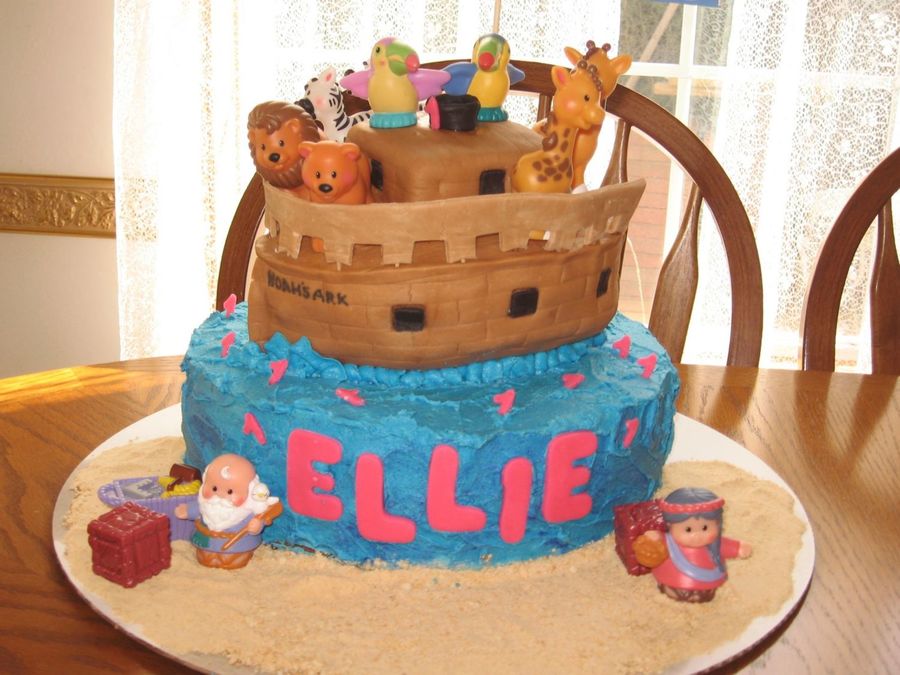 wow! this cake is awesome!! great job on the ark! we have those little people animals scattered ALL OVER the house!!! :lol: