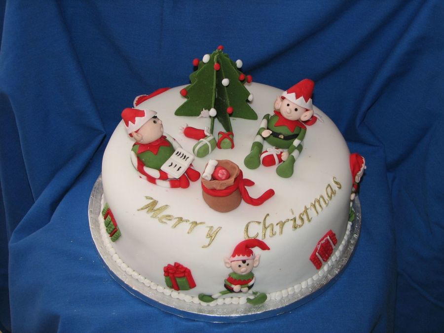 ceshell on 13 Nov 2007 , 8:31pm What an adorable Christmas cake. Love it! Your elves are awesome and the lettering in gold is a nice touch.