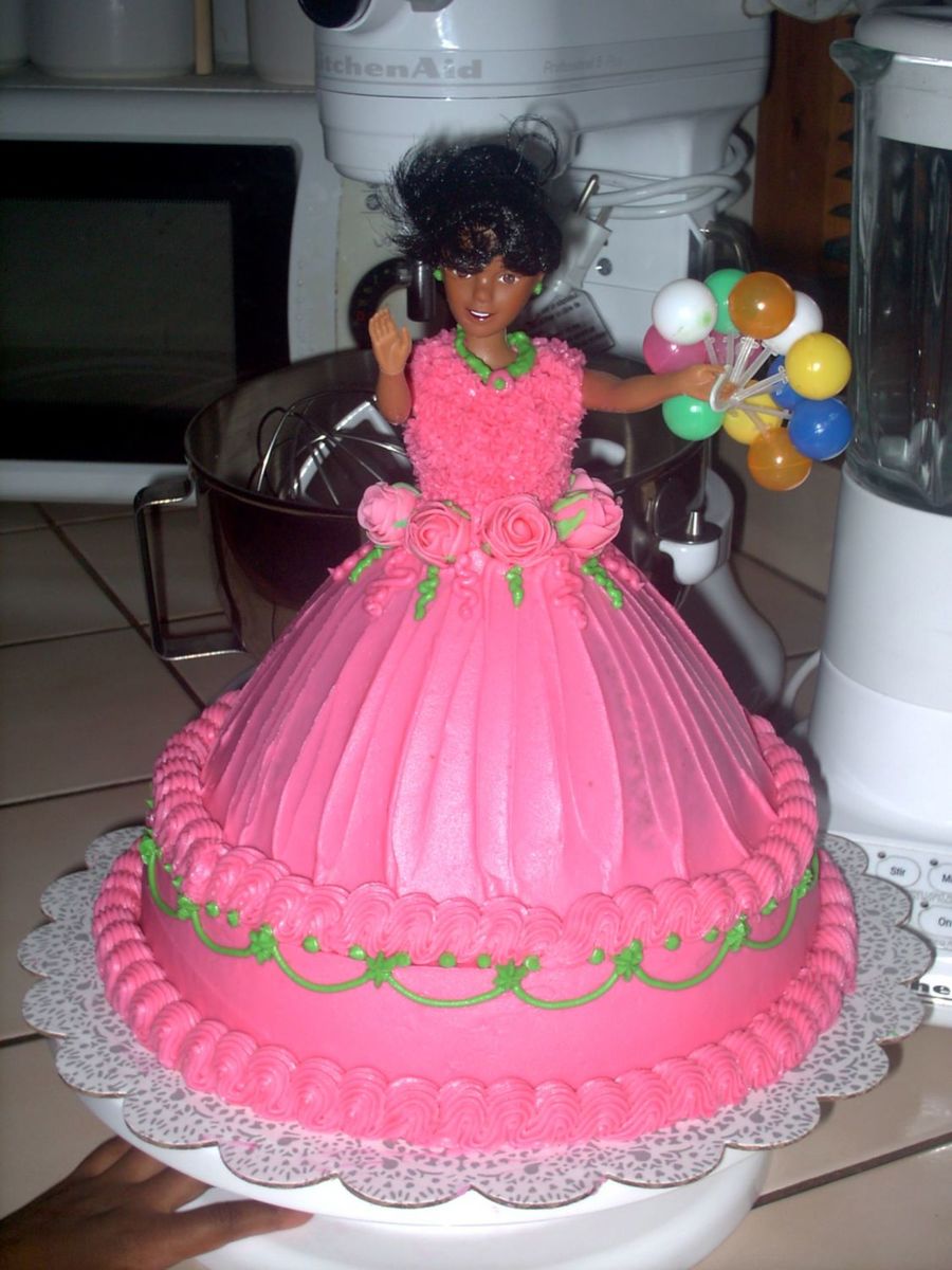 This Doll is absolutely beautiful, you really did a good job on it i love that hot pink, the roses, the way you did the dress, everything in her, i'm sure your daughters really love it. The only thing i don't like is the backround, is so beautiful cake, the mixer and other items in your kitchen . She's so pretty she deserve to be all alone,anyway you did a beautiful job keep up that good work... :D ;-D