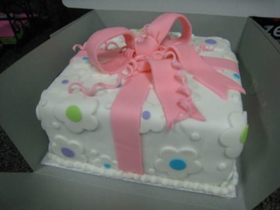 My first attempt at using fondant. The Wilton Instructor deserves the credit for the bow...she helped with that!