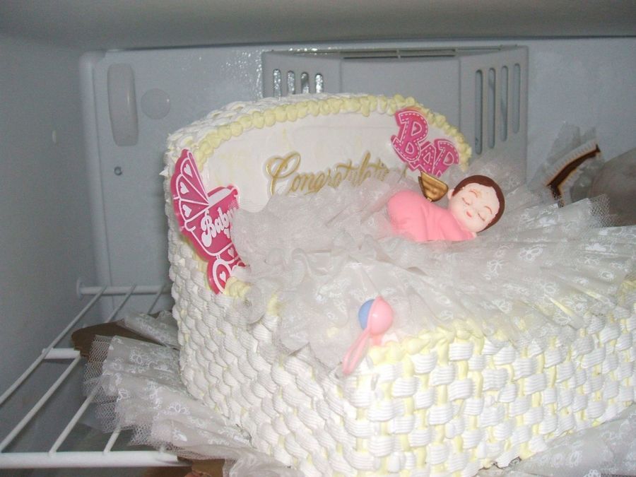 this is my finished bassinet i droppedit off a little early so they keep it in the freezer bc the house was a little warm didn't want it to melt and all