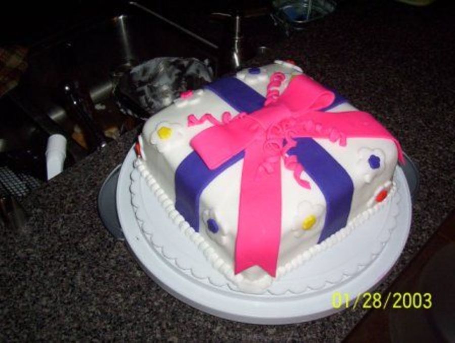 I made this cake in my 3rd Wilton class. It was my first experience with fondant, so excuse the errors. Fondant is fun to play with but it sure does taste awful!