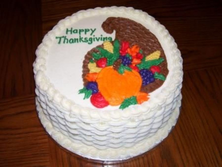 10" round spice cake with cream cheese pastry filling and cinnamon BC. Second of 2 Thanksgiving cakes for coworkers. Star tipped basketweave on this one.