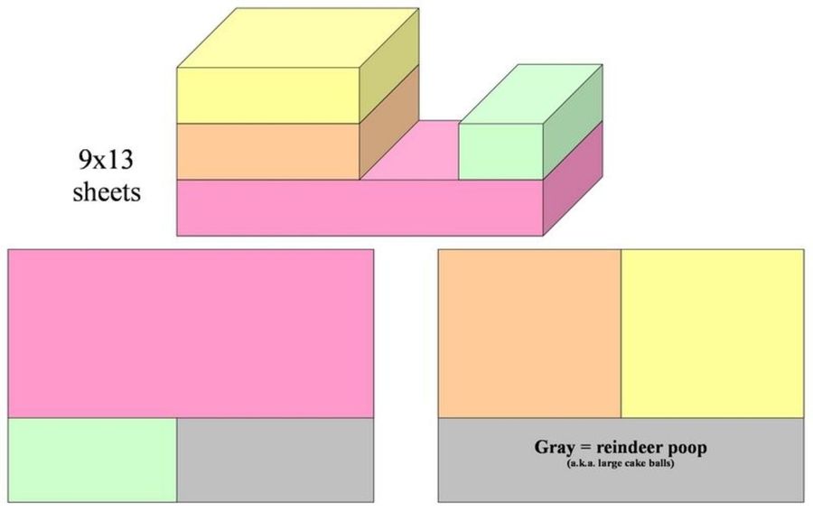how to cut two 9x13 cakes and stack to get basic form for santa sleigh. would scale to work with other size sheet cakes too - - - - side view with carving pattern and runner pattern here: http://www.cakecentral.com/cake-photo_1163198.html