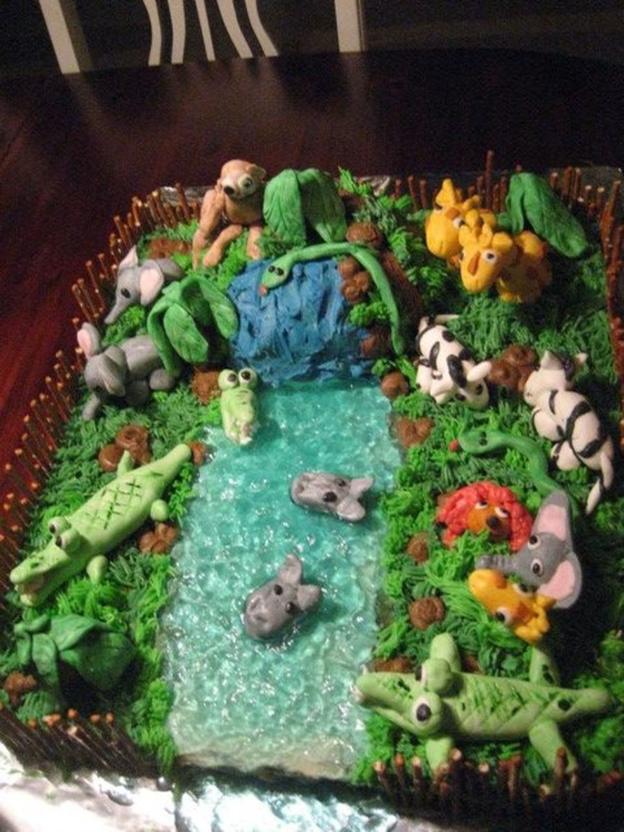The water looks so real! Perfect colors....great animals, too! Awesome cake :D
