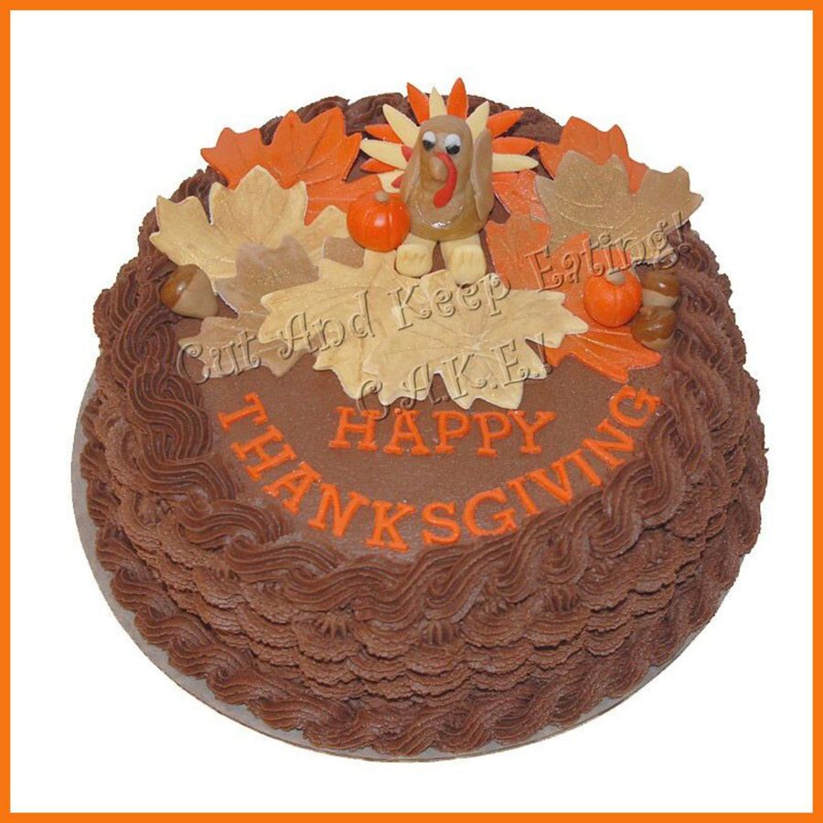 8x3 Best darn Chocolate cake with raspberry chocolate hazlenut BC. Basketweave done in the chocolate hazlenut BC (recipe here - so darn yummy!). Fondant leaves brushed with lustre dust, lettering, fondant pumpkins and acorns and turkey. Fondant turkey inspired by Crissy_Cakes. TFL!