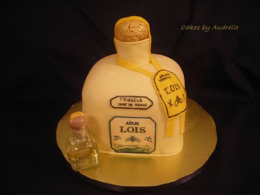 First off, shout out to "THE CAKE MAVEN" for her Patron Tequila cake; mine is not as good as hers, but I tried!! This was done for a girl who loves Patron tequila; took (2) 9x13 cakes cut in half and stacked, then carved, covered in ButterCream Dream and MMF. The neck of the bottle was done with RKT and covered in fondant, and the top was done with RKT as well and painted with gold luster dust. All accents are MMF and the label is an edible image. RKT already made from the box, work GREAT!!