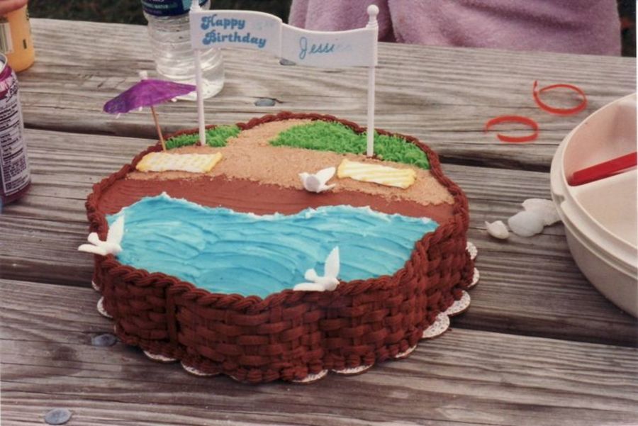 This was for my best friend's daughter in Miami. it is all buttercream except for the sign, umbrella and birds. The sand is brown sugar. I actually had someone ask me "why is there a cake in a basket?" she did not believe me it was icing. lol.
