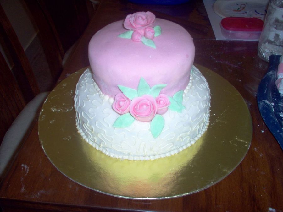 i wanted a cake that i could try out fondant roses and simple piping techniques. i saw this in a magazine, although mine is a lot smaller and a lot less decoration.