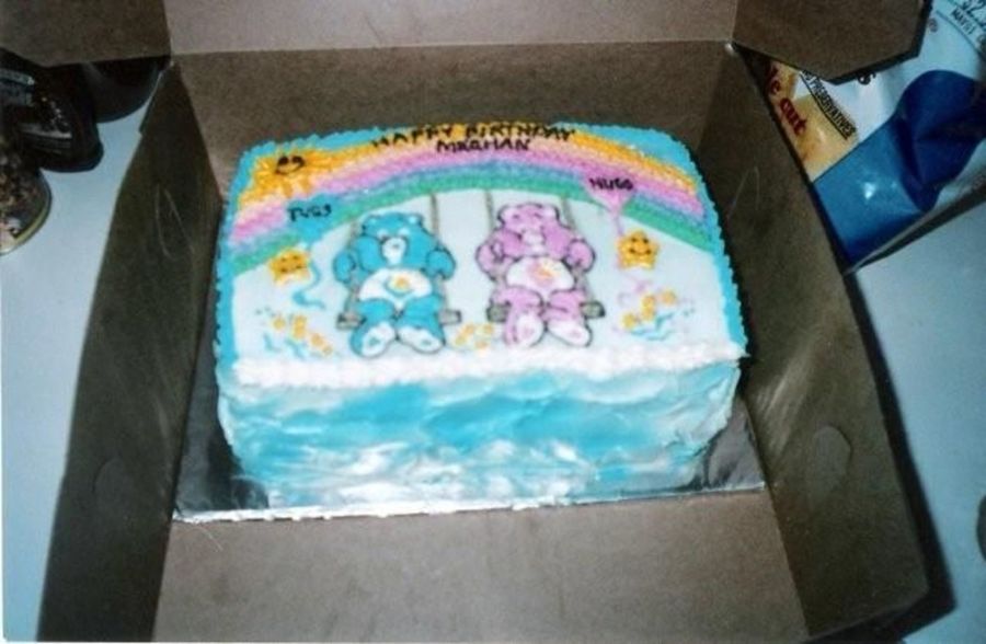This was made for a special girl from my day care who wanted care bears for her 4th birthday. Each care bear was done in buttercream and then placed on the cake.