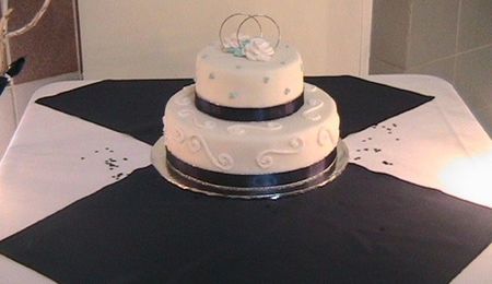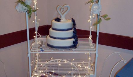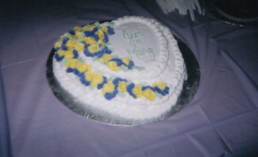 This is a cake that I made for my in-laws 40th anniversary. It is covered with BC icing and royal icing panies.