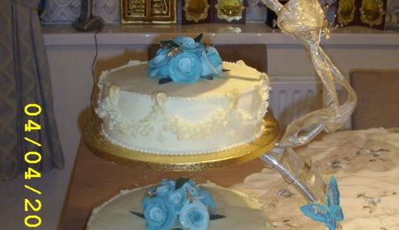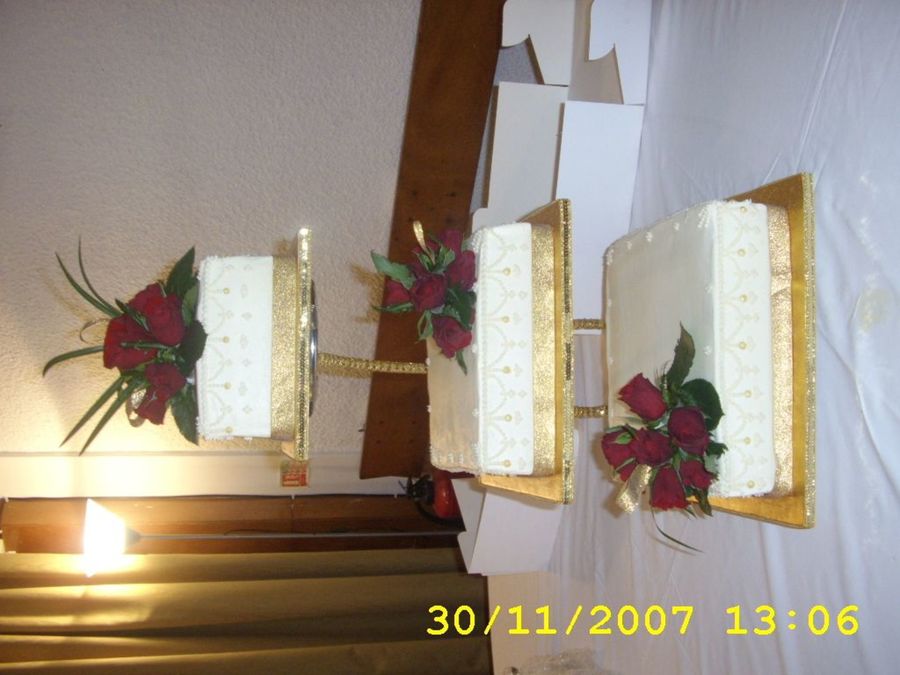 this is my second wedding cake. the theme was creme and gold.the cake is iced in buttercream.