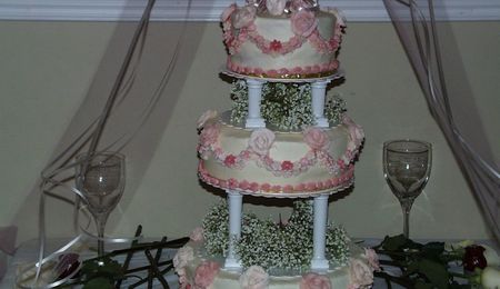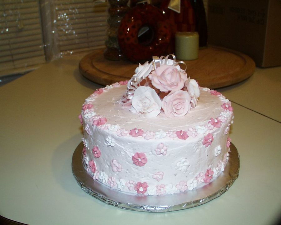 very pretty colour combo! You are terrific with the flowers :) If you want to get a really smooth finish on your icing..check out the Melvira method (forums) or I just use computer paper once the icing crusts to smooth it ...gets rid of all the spatula marks...without doing another thing, your cake is very pretty and girly!!