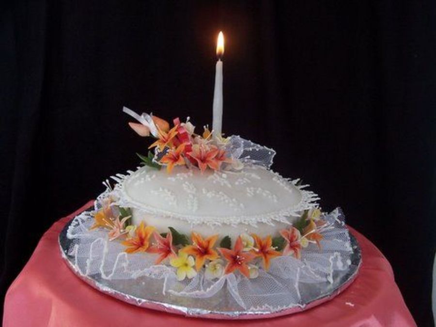 A Birthday Cake with Tulle, Lace-work and Gum paste Blossoms. Swati http://sugarcraftindia.blogspot.com