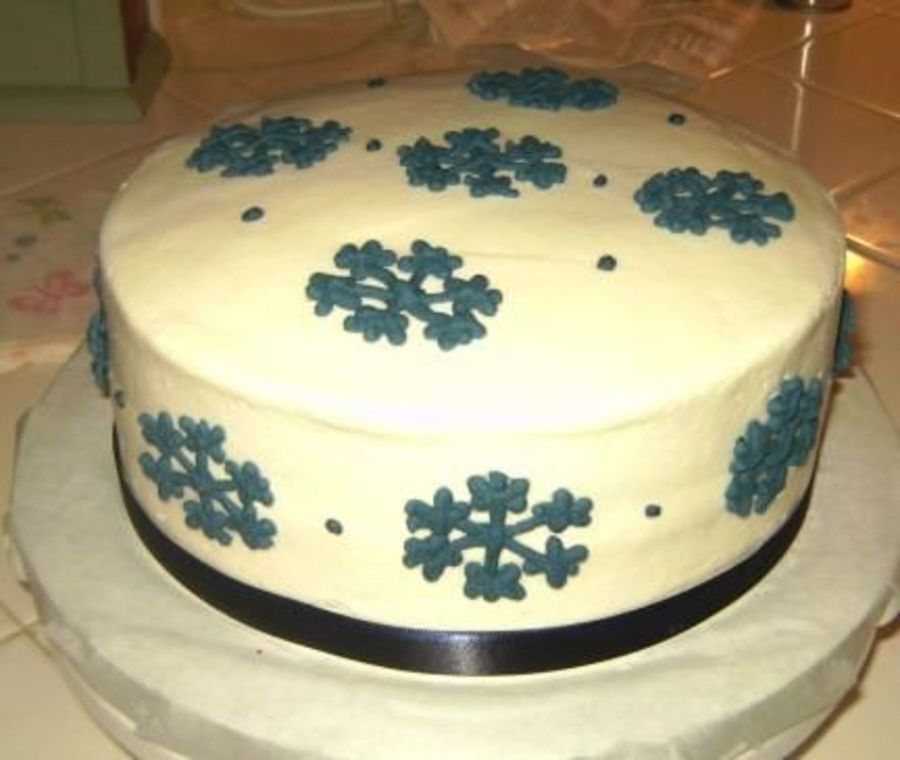 I made this cake as a practice cake. I'm the MOH in my best friends wedding, so there was no question on making the cake vs. buying!!! It's my first time using the ribbon on the cake, and it was so easy, and makes it look SOOO elegant. For the shower, i'm using the Wilton Party Stand w/the 3 offset tiers. I just made this 8in cake. I didn't figure I needed to practice all 3 since they'll be the same!!! I'm still trying to figure out an elegant topper for the top tier. I tried icing sugar cookies on a stick....but when I put them in...cute as they were, it just took away from the "elegant" look of the cake. Any tips? Ideas? I like the look of the ones that have the silver wire and such...maybe I could hang some snowflakes off of some curly silver wire...but I have no idea what kind of wire I need or how to do it....The shower is the 29th of this month, so any input would be GREATLY appreciated!