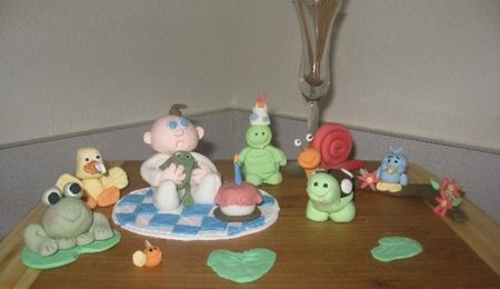 This is a cake I made for my best friend's 4 yr. old. He didn't want her to cut it all he head was " No momma I want to look at it some more." As he was putting his head on his arm.....now that makes you feel good. The cake it's self is five 6" cakes and a half of the wilton sports ball on top. The legs are r.c.t. all frosted with buttercream.
