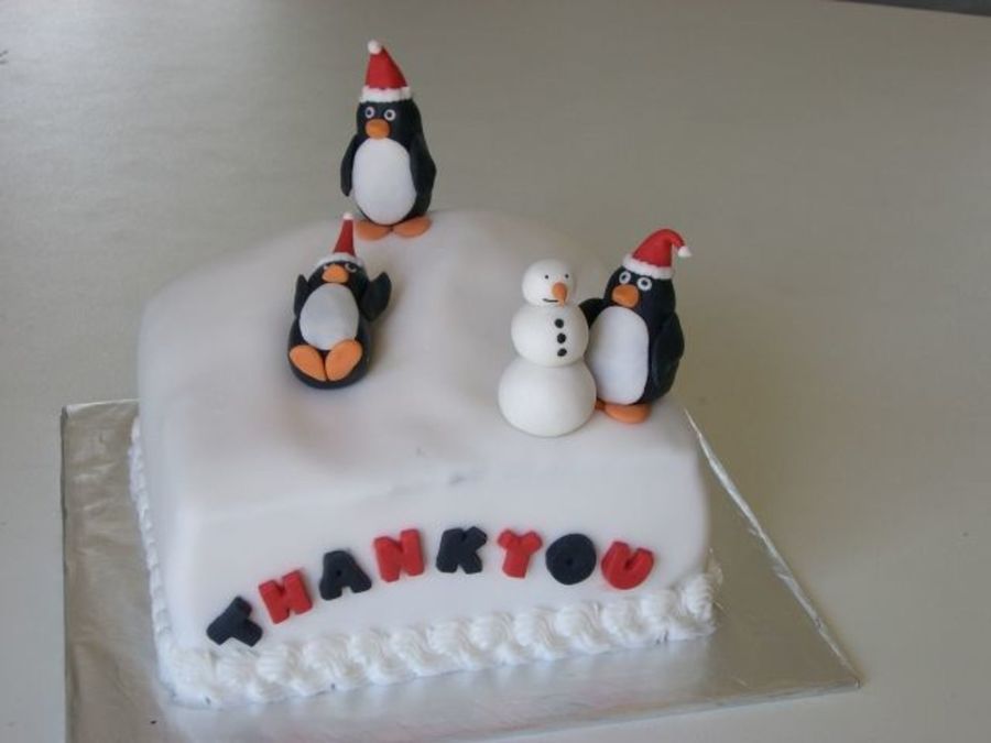 I'd seen lots of cute penguins and wanted to give them a try, so the opportunity came when I wanted a "Thankyou" cake for a friend. I wanted to put more detail, but only had a few hours and ran out of time. It's a vanilla cake with boysenberry filling, covered in fondant and fondant penguins.