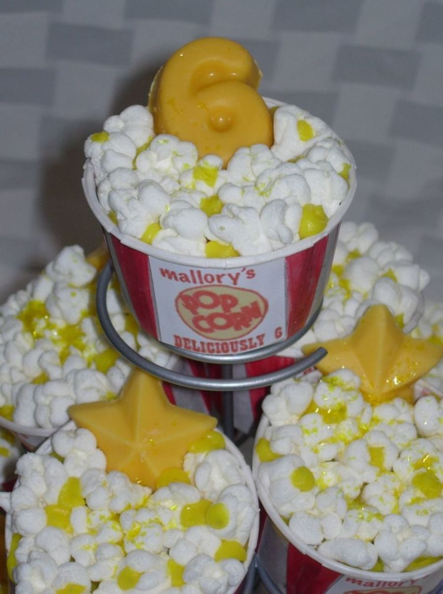 Clearly these are inspired by others on this sight. I used yellow edible glitter for the "butter" and made yellow white chocolate stars and the # 6. I formatted the label to reflect the girl's name and her age.