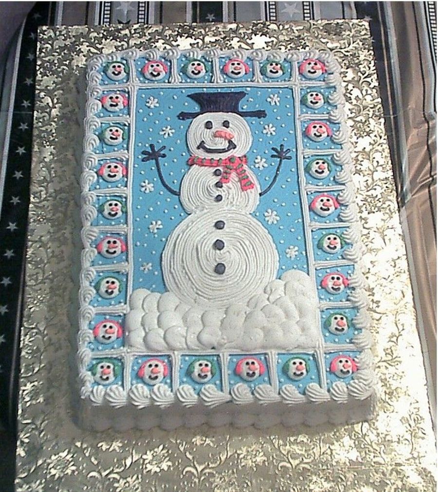 Ths is one of the cutest non-carved snowman cakes I have ever seen. I love it!!!!!!
