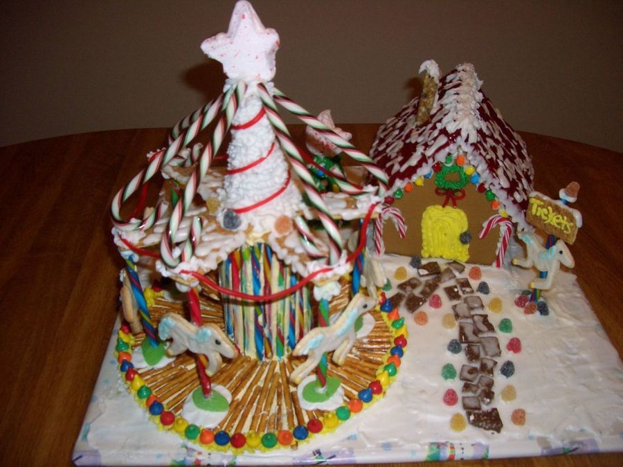 Carousel I made for a contest at my job. They supplied the pre-made gingerbread house; I made and decorated everything else.