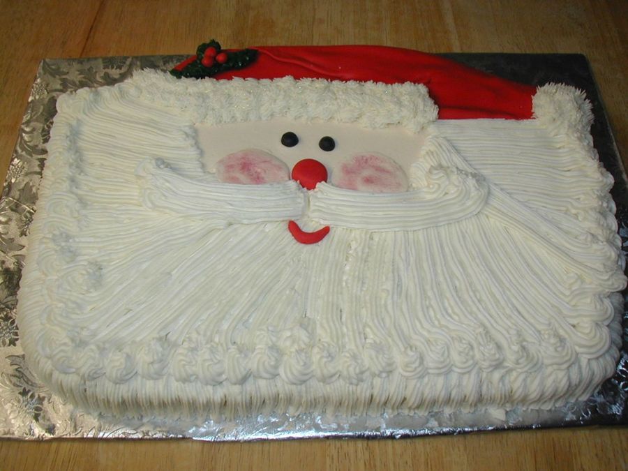 Half sheet shaped into a santa face. All Bc with a fondant hat.
