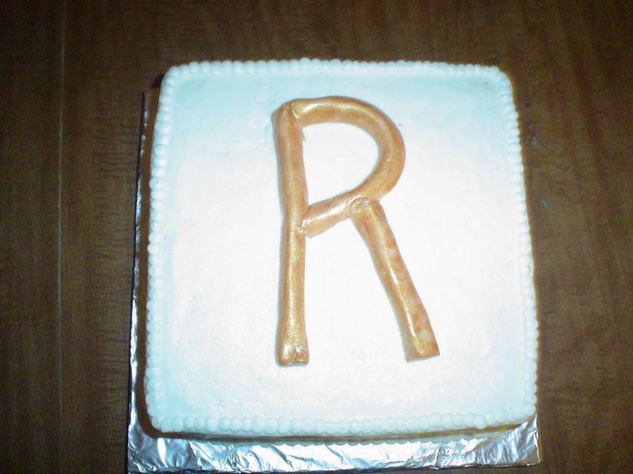 I made this for the dinner we had with my Dad's side of the family. It was a cinnamon-vanilla flavor cake with butter cream icing. The "R" is fondant painted with Old Gold Luster Dust. I had to adapt the cake 3 times. This is the final product. Picture isn't great, I need a new camera.