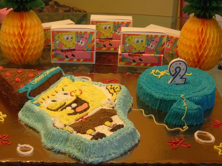 Vanilla Sponge Bob Cake with balloon.