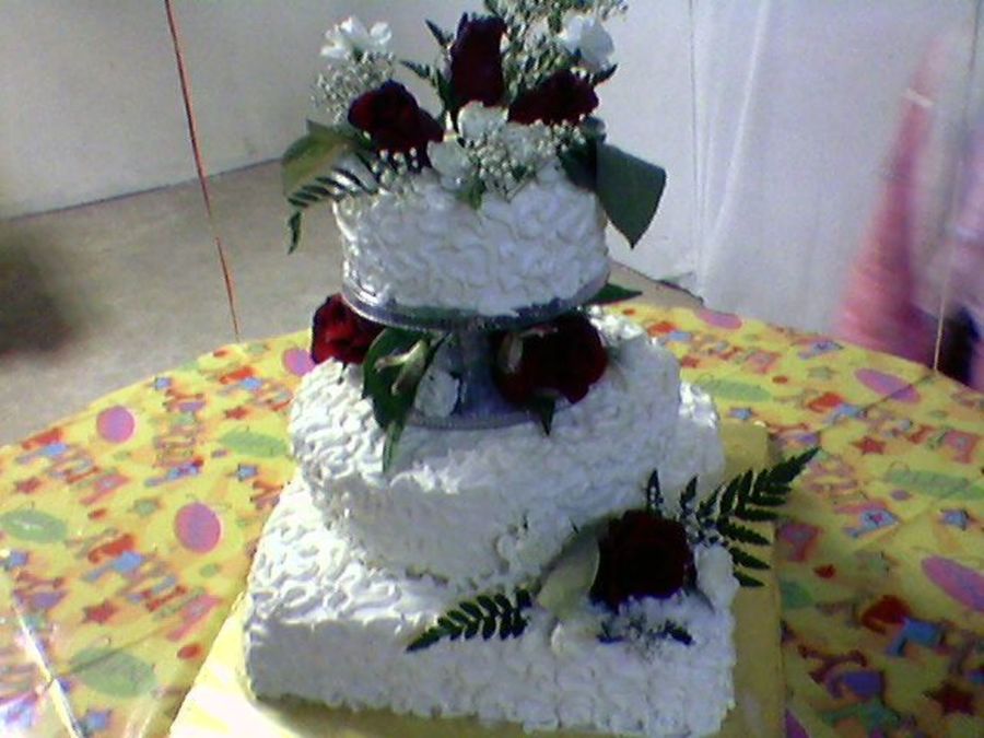round and square wedding cake yellow cake wit buttercream frosting