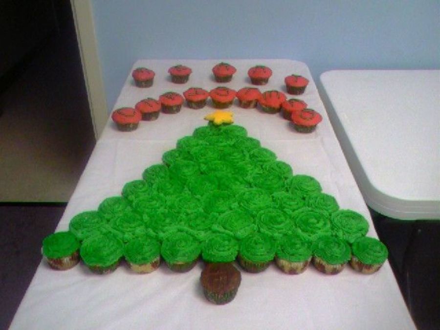 kschroeder4 on 21 Dec 2007 , 11:26pm Great idea. Looks very nice. I especially like how you spelled out Merry Christmas with the red cupcakes and the yellow cookie (?) star at the top
