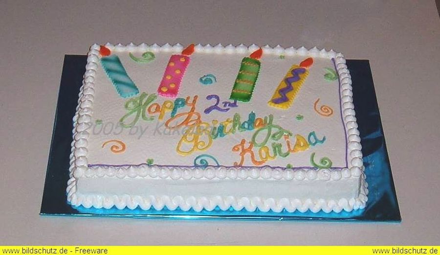 When the customer doesn't give you any theme here is a generic idea. This 12"x8" sheet is iced w/b'cream. The candles & flames are fondant. I airburshed them but they can be decorated w/b'cream just as easily.