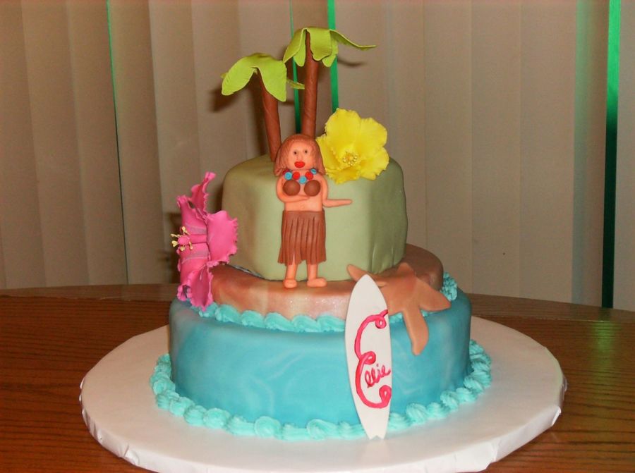 this is a really nice cake. Your figures, palm tree, and hibiscus really make this cake great!