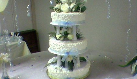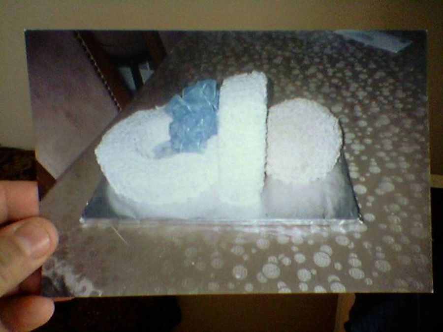 baby shower cake i made for a friend. saw picture in a magazine and loved it, cake was made from a ball pan and two 10" round cake, buttercream and a blue bow for a boy.