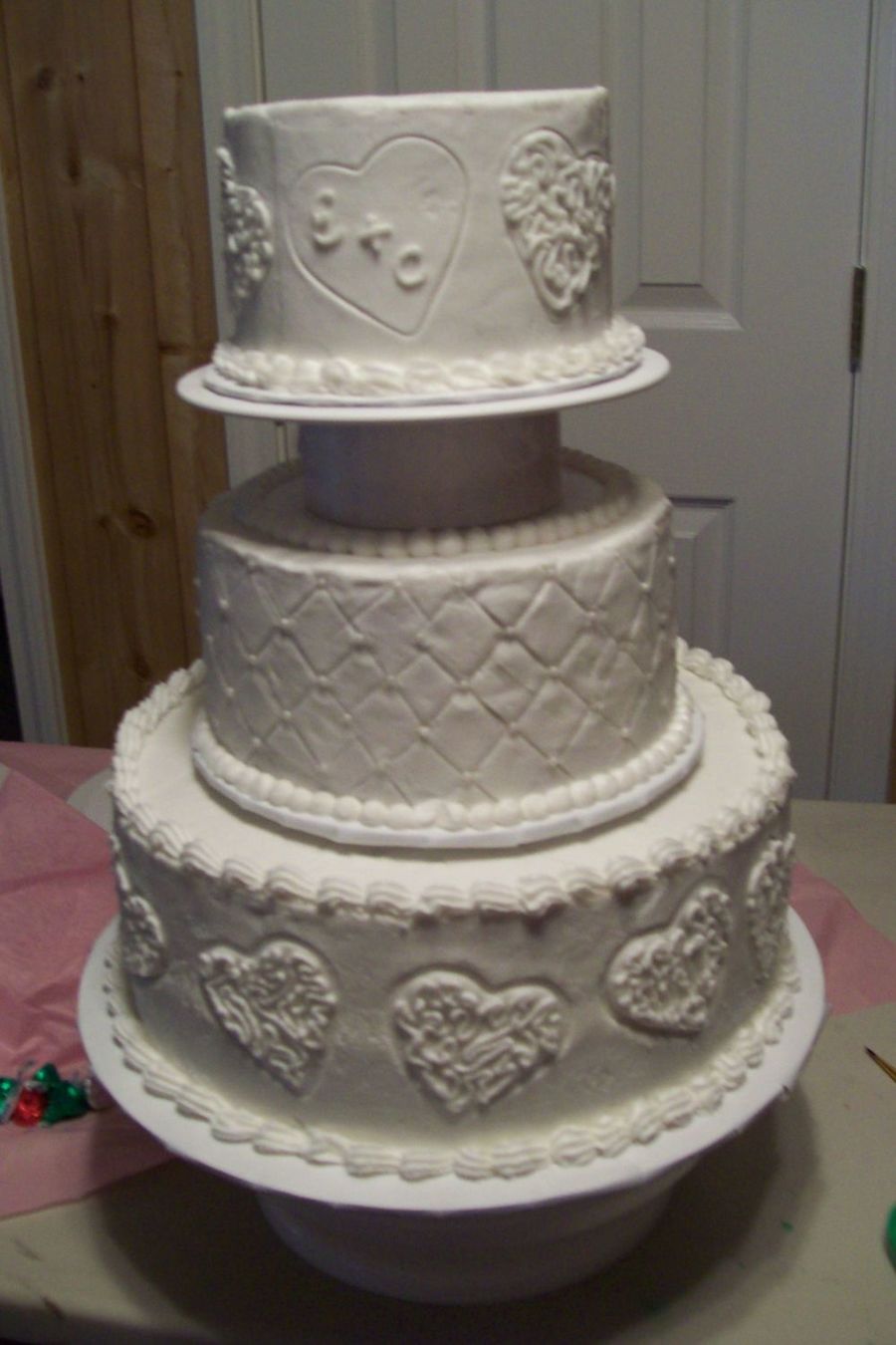 This cake was done on short notice. I was called Friday Bride and Groom need a cake for their wedding on Sunday. Got it done!