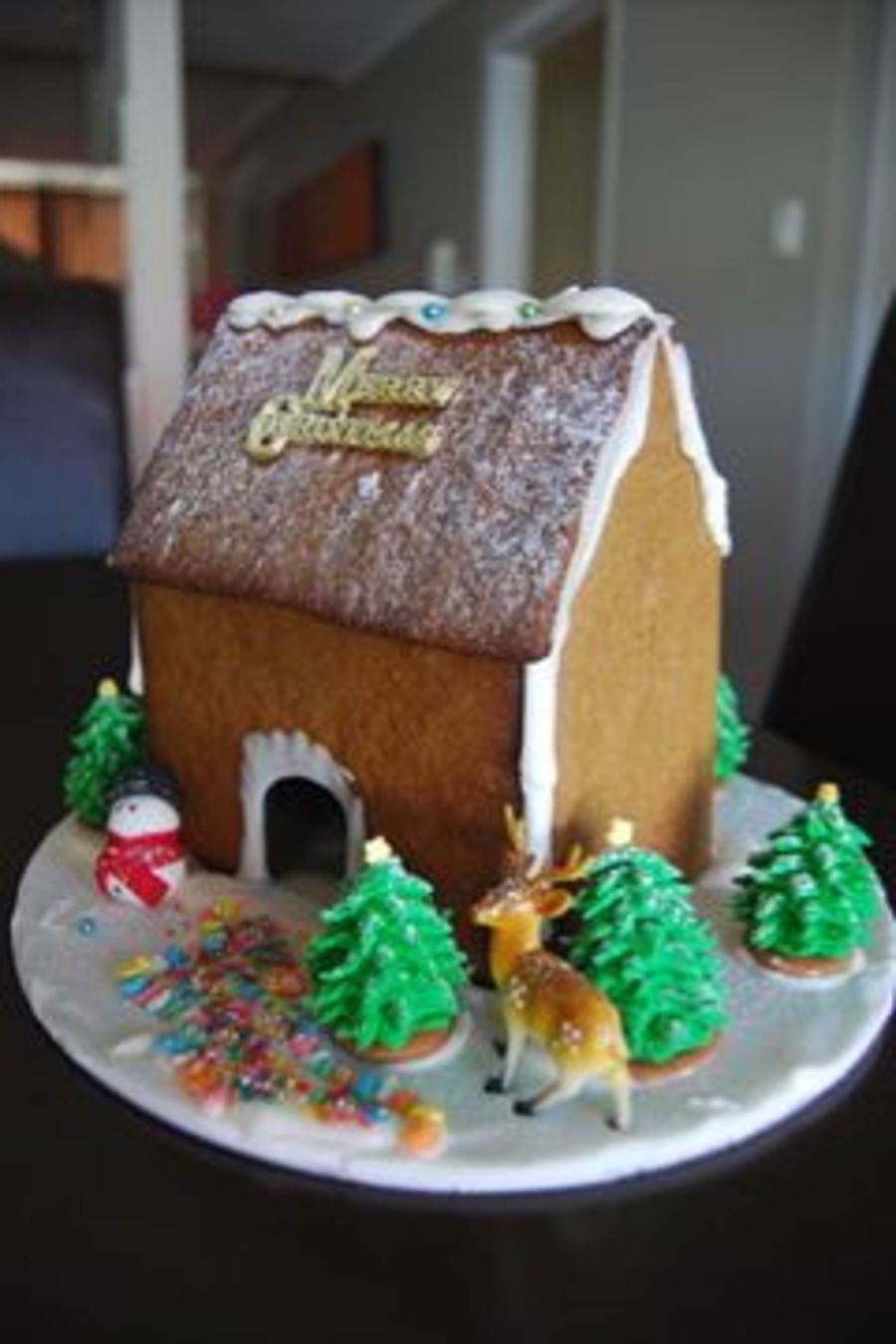 Well done!--all the extra's add so much--the snowman, trees, deer--beautiful scene!