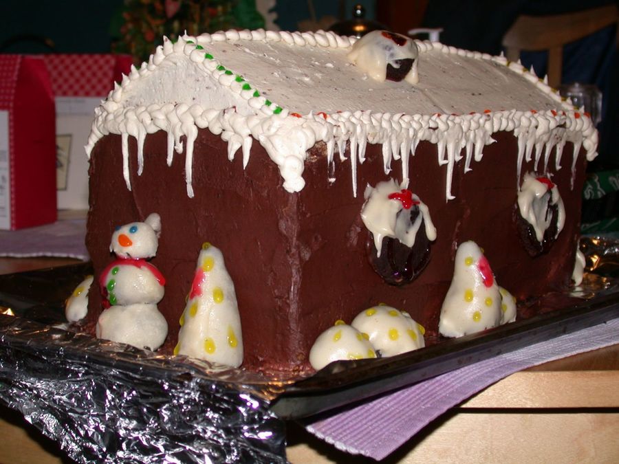 Here is the slightly less colorful twin of the other "gingerbread" house cake. They were both four layers tall and mighty heavy.