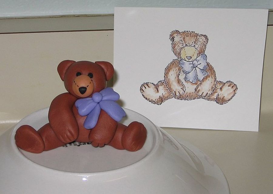 I created this little fondant bear to match a rubber stamp I have. I'm a rubber stamper and thought it would be fun to make my mom a cake, card and wrapping to match. Her birthday is coming up this month. I colored the stamped image first so I knew what colors I wanted to use. This was fun. Thanks for looking!