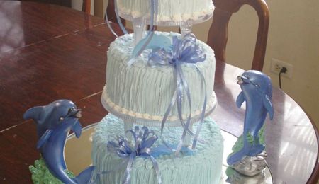 Three Tiered Cake Decorated With Gumpaste Dolphins And Shells