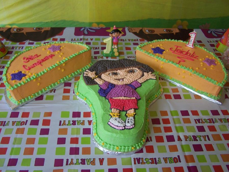 I made this cake for my goddaughter. Buttercream finish. Cut 12" round cake in half to make side cakes.